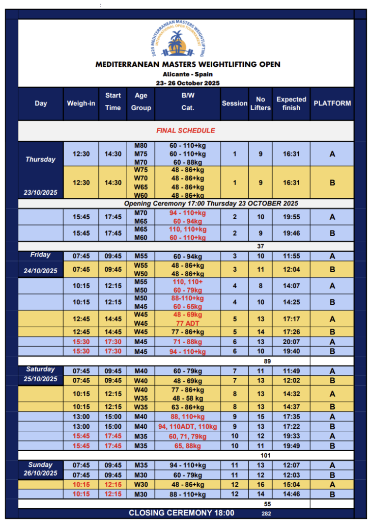 - Final Bodyweight Category Changes: 21 Oct 2025, 20:00 CET – CLOSED