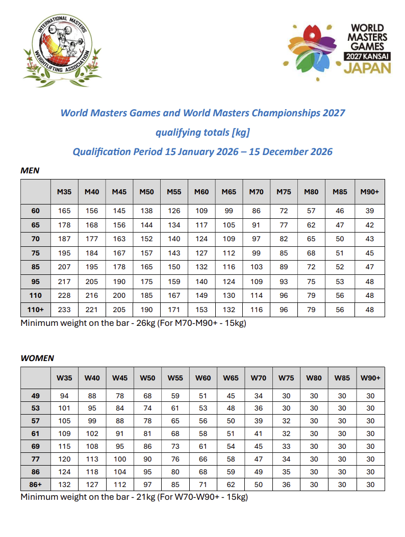 MARCAS CLASIFICATORIAS: World Qualification Totals 2027